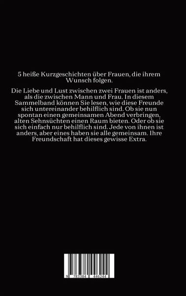 5 heiße Kurzgeschichten über Frauen, die ihrem Wunsch folgen.Die Liebe und Lust zwischen zwei Frauen ist anders, als die zwischen Mann und Frau. In diesem Sammelband können Sie lesen, wie diese Freunde sich untereinander behilflich sind. Ob sie nun spontan einen gemeinsamen Abend verbringen, alten Sehnsüchten einen Raum bieten. Oder ob sie sich einfach nur behilflich sind. Jede von ihnen ist anders, aber eines haben sie alle gemeinsam. Ihre Freundschaft hat dieses gewisse Extra.