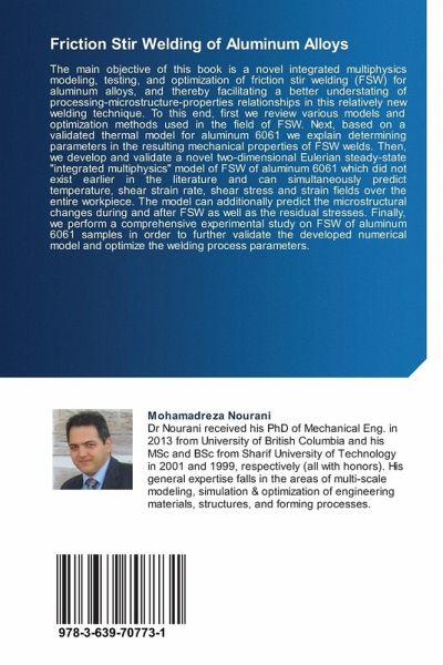 The main objective of this book is a novel integrated multiphysics modeling, testing, and optimization of friction stir welding (FSW) for aluminum alloys, and thereby facilitating a better understating of processing-microstructure-properties relationships in this relatively new welding technique. To this end, first we review various models and optimization methods used in the field of FSW. Next, based on a validated thermal model for aluminum 6061 we explain determining parameters in the resulting mechanical properties of FSW welds. Then, we develop and validate a novel two-dimensional Eulerian steady-state "integrated multiphysics" model of FSW of aluminum 6061 which did not exist earlier in the literature and can simultaneously predict temperature, shear strain rate, shear stress and strain fields over the entire workpiece. The model can additionally predict the microstructural changes during and after FSW as well as the residual stresses. Finally, we perform a comprehensive experimental study on FSW of aluminum 6061 samples in order to further validate the developed numerical model and optimize the welding process parameters.