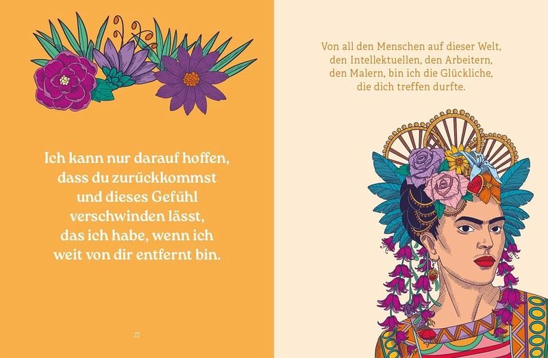 Dieses Buch enthält 100 kraftvolle Weisheiten über das Leben, die Liebe, über Verluste und die Poesie. Fridas Worte geben Hoffnung, berühren und erinnern daran, dass das Leben mit all seinen Herausforderungen wunderschön und voller Wunder ist.