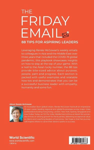 "Leveraging Renâee McGowan's weekly emails to colleagues in Asia and the Middle East over three years that included the global pandemic, this playbook showcases insights on how to stay at the top of your game. With a nod to the Asian lucky number, 88 tips provide bitesized advice related to purpose, people, path and progress. Each section is packed with useful examples and relatable how-tos and demonstrates that you can be a successful business leader with empathy, humanity and some fun"--