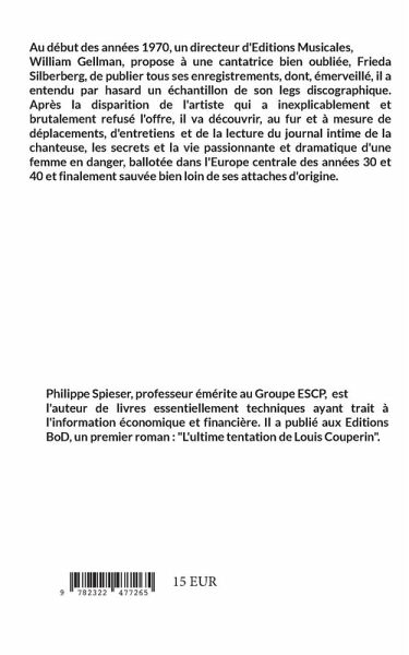 Au début des années 1970, un directeur d'Editions Musicales, William Gellman propose à une cantatrice bien oubliée, Frieda Silberberg, de publier tous ses enregistrements, dont, émerveillé, il a entendu par hasard un échantillon de son legs discographique. Après la disparition de l'artiste qui a inexplicablement et brutalement refusé l'offre, il va découvrir, au fur et à mesure de déplacements, d'entretiens et de la lecture du journal intime de la chanteuse, les secrets et la vie passionnante et dramatique d'une femme en danger, ballotée dans l'Europe centrale des années 30 et 40 et finalement sauvée bien loin de ses attaches d'origine.