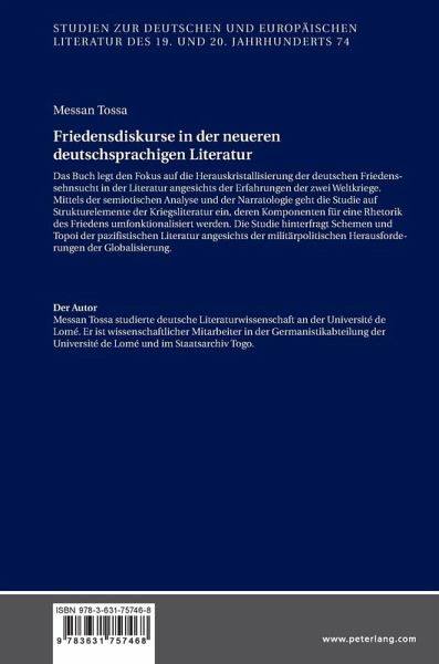 Das Buch legt den Fokus auf die Herauskristallisierung der deutschen Friedenssehnsucht in der Literatur angesichts der Erfahrungen der zwei Weltkriege. Mittels der semiotischen Analyse und der Narratologie geht die Studie auf Strukturelemente der Kriegsliteratur ein, deren Komponenten für eine Rhetorik des Friedens umfonktionalisiert werden. Die Studie hinterfragt Schemen und Topoi der pazifistischen Literatur angesichts der militärpolitischen Herausforderungen der Globalisierung.