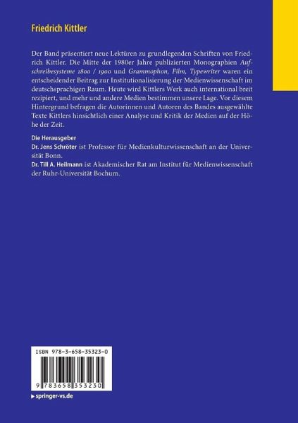 Der Band präsentiert neue Lektüren zu grundlegenden Schriften von Friedrich Kittler. Die Mitte der 1980er Jahre publizierten Monographien Aufschreibesysteme 1800 / 1900 und Grammophon, Film, Typewriter waren ein entscheidender Beitrag zur Institutionalisierung der Medienwissenschaft im deutschsprachigen Raum. Heute wird Kittlers Werk auch international breit rezipiert, und mehr und andere Medien bestimmen unsere Lage. Vor diesem Hintergrund befragen die Autorinnen und Autoren des Bandes ausgewählte Texte Kittlers hinsichtlich einer Analyse und Kritik der Medien auf der Höhe der Zeit.