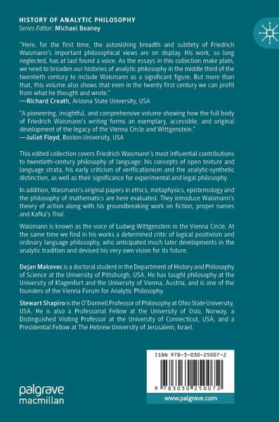 Waismann is known as the voice of Ludwig Wittgenstein in the Vienna Circle. At the same time we find in his works a determined critic of logical positivism and ordinary language philosophy, who anticipated much later developments in the analytic tradition and devised his very own vision for its future.
