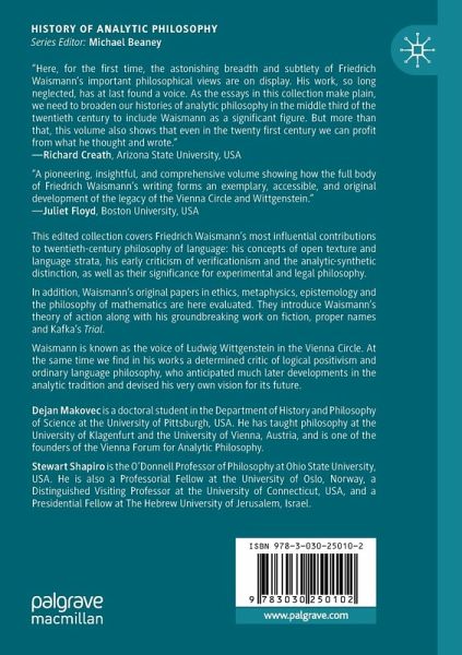 1. Introduction. Dejan Makovec.- Part I: Wittgenstein and the Vienna Circle.- 2. Waismann in the Vienna Circle. Christoph Limbeck-Lilienau.- 3. Producing a Justification: Waismann on the Relation Between Ethics and Science. Constantine Sandis.- 4. Friedrich Waismann's Philosophy of Mathematics. Severin Shroeder and Harry Tomany.- 5. Waismann on Belief and Knowledge. Annalisa Coliva.- 6. "How I See Philosophy": An Apple of Discord Among Wittgenstein Scholars. Katherine Morris.- Part II: Philosophy and Language.- 7. Waismann: From Wittgenstein's Tafelrunde to his Writings on Analycity. Gregory Lavers.- 8. Breaking the Spell: Waismann's Papers on the Analytic/Synthetic Distinction. Gillian Russell.- 9. Open Texture and Analyticity. Stewart Shapiro and Craige Roberts.- 10. Linguistic Legislation and Psycholinguistic Experiments: Redeveloping Waismann's Approach. Eugene Fischer.- Part III: Law, Action, Fiction.- 11. Waismann, Wittgenstein, Hart, and Beyond: The Developing Idea of "Open Texture" of Language and Law. Brian H. Bix.- 12. Friedrich Waismann and the Distinctive Logic of Legal Language. Frederick Schauer.- 13. Motives and Interpretations. Ulrike Heuer.- 14. Waismann on Fiction and its Objects. Graham Priest.- 15. "I wanted to hear your judgement":Waismann, Kafka and Wittgenstein on the Power and Powerlessness of Language. Géza Kállay and Katalin G. Kállay.