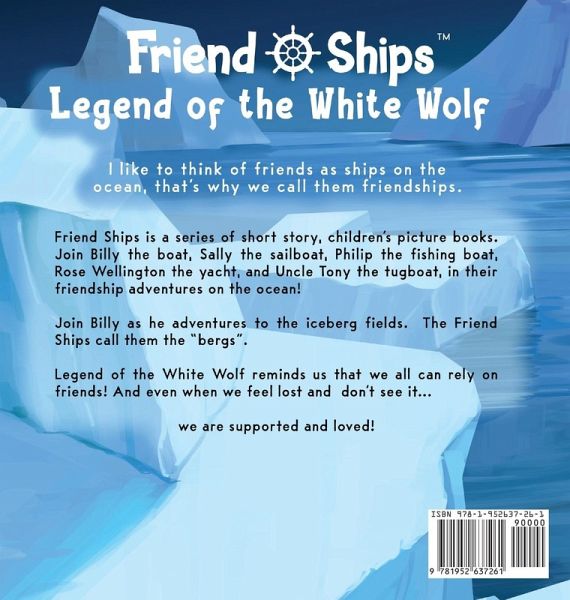 Friend Ships is a series of short story, children's picture books. Join Billy the boat, Sally the sailboat, Philip the fishing boat, Rose Wellington the yacht, and Uncle Tony the tugboat, in their friendship adventures on the ocean! Join Billy as he adventures to the iceberg fields. The Friend Ships call them the "bergs". Legend of the White Wolf reminds us that we all can rely on friends! And even when we feel lost and don't see it...we are supported and loved!