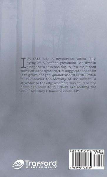 It's 1818 A.D. A mysterious woman lies dying on a London pavement. An urchin disappears into the fog. A few disjointed words uttered by the victim suggest that a child is in grave danger. Quaker widow Ruth Bowen must discover the identity of the woman, a stranger to the city, and find that child before harm can come to it. Others are seeking the child. Are they friends or enemies?