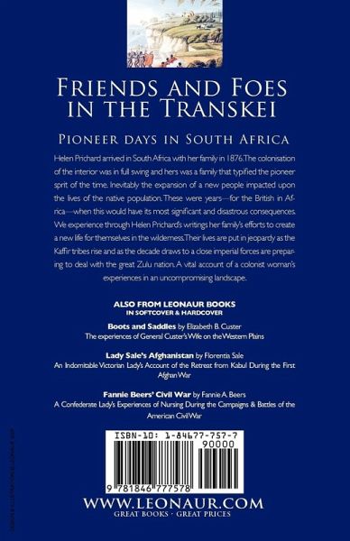 Pioneer days in South Africa Helen Prichard arrived in South Africa with her family in 1876. The colonisation of the interior was in full swing and hers was a family that typified the pioneer sprit of the time. Inevitably the expansion of a new people impacted upon the lives of the native population. These were years-for the British in Africa-when this would have its most significant and disastrous consequences. We experience through Helen Prichard's writings her family's efforts to create a new life for themselves in the wilderness. Their lives are put in jeopardy as the Kaffir tribes rise and as the decade draws to a close imperial forces are preparing to deal with the great Zulu nation. A vital account of a colonist woman's experiences in an uncompromising landscape.