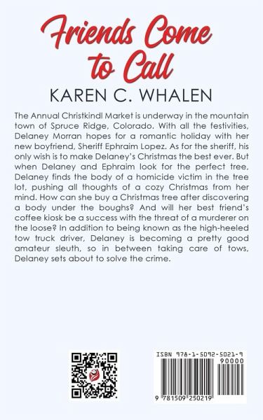 The Annual Christkindl Market is underway in the mountain town of Spruce Ridge, Colorado. With all the festivities, Delaney Morran hopes for a romantic holiday with her new boyfriend, Sheriff Ephraim Lopez. As for the sheriff, his only wish is to make Delaney's Christmas the best ever. But when Delaney and Ephraim look for the perfect tree, Delaney finds the body of a homicide victim in the tree lot, pushing all thoughts of a cozy Christmas from her mind. How can she buy a Christmas tree after discovering a body under the boughs? And will her best friend's coffee kiosk be a success with the threat of a murderer on the loose? In addition to being known as the high-heeled tow truck driver, Delaney is becoming a pretty good amateur sleuth, so in between taking care of tows, Delaney sets about to solve the crime.