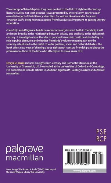Introduction PART I: FRIENDSHIP IN CRISIS 1. Scriblerian Friendship and Public Crisis 2. Daniel Defoe and South Sea Friendship 3. Lord Hervey and the Limits of Court Whig Pragmatism 4. The Friendly Opposition and Public Life in Pope's Bathurst 5. Friendship and the Patriot Prince PART II: FRIENDSHIP BY TROPE 6. Friendship and Fable 7. Friendship and Criminality 8. Epilogue: Friendship and Rural Retreat Notes Bibliography Index