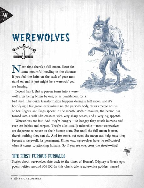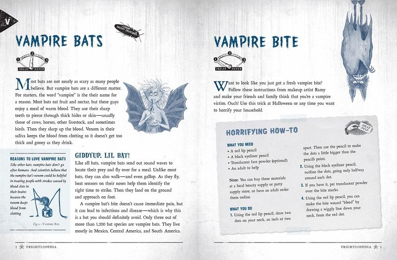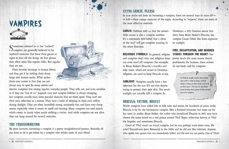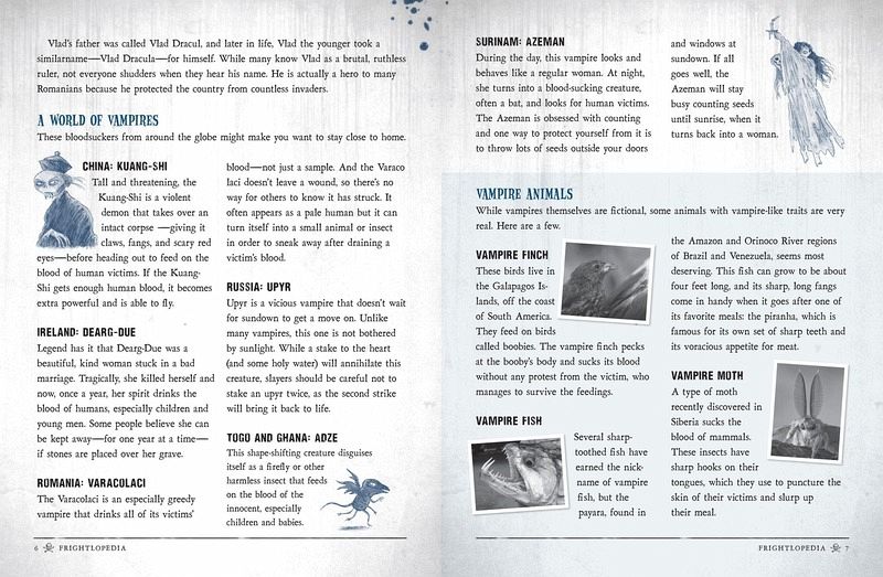 It's one-stop-shopping for everything scary: a survey of over 50 of the world's most gruesome places, creatures, and scary stories, organized like an encyclopedia--from "Arachnids" to "Zombies"--and written just for kids. It blends nonfiction (How do you say "boo" in other languages? Can a person actually be scared to death?) with fiction (stories of creepy monsters from around the world), and hands-on activities (from applying zombie make-up to creating your own ghost stories). Take a tour of Borneo's Gomantong Cave where bats, cockroaches, spiders, and rats live together--in the millions--among the pitch black. Or enter into the Beauregard-Keyes House in New Orleans where Civil War solders still do battle in the front hall. Discover the origins of mythical horrors straight out of your nightmares like the Mongolian Death Worm and The Bell Witch, as well as creatures we only wish were fiction like killer bees, the deadly insects created by scientists in a failed lab experiment in 1950. Identify plants like the Manchineel of Southern Florida and Central America, a tropical tree covered in succulent-looking fruit--full of deadly, mouth burning, throat swelling poison. Read and share ghost stories from around the globe that will make you and your friends jump. Plus DIY activities: Create your own haunting; brew up a batch of fake blood; hold your own séance. Illustrated throughout, Frightlopedia is for every horror-loving young reader who loves a good scare--or sharing one with his friends and family. Each entry includes a "Fright Meter" which measures its scariness score from 1 to 3 to help readers decide the right amount of horror they're in the mood for--being scared is fun, but everyone has their limits. Ready to scare yourself and your friends silly? Read this book, if you dare...