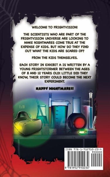 Welcome to FrightVision! The scientists who are part of the FrightVision Universe are looking to make nightmares come true at the expense of kids. But how do they find out what the kids are scared of? From the kids themselves. Each of the 68 stories in EXHIBIT A is written by a young FrightStormer between the ages of 8 and 12 years old! Little did they know, their story could become the next experiment. 100% of the royalties from Exhibit A are being donated to Anaik's Loving Library! Happy Nightmares!