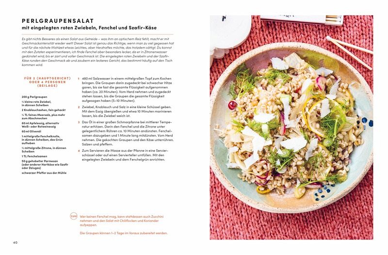 Grafisch gestaltete Mix-&-Match-Anleitungen helfen zudem dabei, ganz eigene Rezepte für Schmortöpfe und Pfannengerichte zu kreieren. Ambitionierte Köch:innen erhalten so neben den bereits enthaltenen Rezepten die Möglichkeit, ihre Kreativität auszuleben.