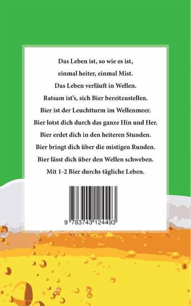 Das Leben ist, so wie es ist, einmal heiter, einmal Mist. Das Leben verläuft in Wellen. Ratsam ist's, sich Bier bereitzustellen. Bier ist der Leuchtturm im Wellenmeer. Bier lotst dich durch das ganze Hin und Her. Bier erdet dich in den heiteren Stunden. Bier bringt dich über die mistigen Runden. Bier lässt dich über den Wellen schweben. Mit 1-2 Bier durchs tägliche Leben.