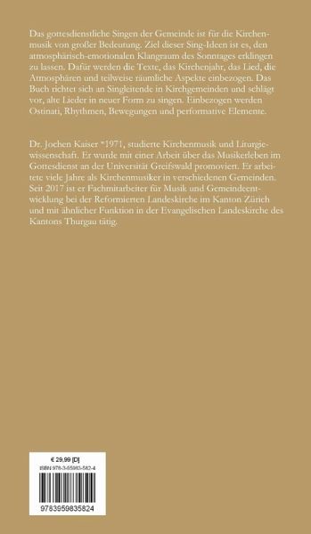 Das gottesdienstliche Singen der Gemeinde ist für die Kirchenmusik von großer Bedeutung. Ziel der folgenden Sing-Ideen ist es, den atmosphärisch-emotionalen Klangraum des Sonntages erklingen zu lassen. Dafür werden die Texte, das Kirchenjahr, das Lied, Atmosphären und teilweise räumliche Aspekte einbezogen. Das Buch richtet sich an Singleitende in Kirchgemeinden und schlägt vor, alte Lieder in neuer Form zu singen. Einbezogen werden Ostinati, Rhythmen, Bewegungen und performative Elemente.