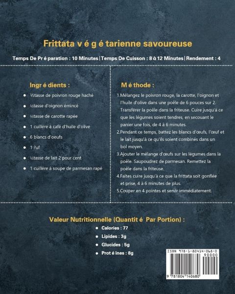 Craignez-vous de reprendre du poids après avoir subi une chirurgie bariatrique ? Vous voulez manger sainement sans avoir à passer une heure interminable dans la cuisine ? Ce livre de recettes pour friteuse bariatrique est donc la lecture parfaite pour vous ! Dans ce livre, non seulement vous en apprendrez plus sur le régime bariatrique, comment le suivre et comment s'y mettre, mais vous y trouverez aussi des tonnes d'idées de fritures à l'air qui vous aideront à cuisiner des repas sans huile et pauvres en calories, essentiels pour garder votre poids sous contrôle ! Beaucoup de gens se plaignent de reprendre du poids même après un traitement bariatrique, et cela est principalement dû au régime qu'ils suivent ! Une fois l'opération terminée, vous devez suivre un régime alimentaire plus strict afin de maintenir la taille réduite de votre estomac en place ! Une friture bien aérée est un excellent moyen d'éviter tous les problèmes digestifs et de permettre à votre estomac de fonctionner sainement. Et maintenant, vous pouvez rendre cela possible en utilisant toutes les différentes recettes de ce livre de cuisine complet. Ce que vous pouvez trouver dans ce livre : · Qu'est-ce que le régime bariatrique ? · Comment suivre le régime bariatrique · Aliments à manger et à éviter · Conseils pour débuter · Qu'est-ce que l'Air Fryer ? · Comment fonctionne-t-il ? · Avantages de la friture à l'air · Conseils et astuces de cuisine Cuisiner dans une friteuse à air et manger des aliments sains et respectueux de l'estomac peuvent désormais aller de pair ! Une fois que vous avez suivi un traitement bariatrique, la nécessité de manger des aliments sans huile et peu caloriques devient vitale, et ce livre de cuisine vous aidera à trouver les bonnes idées pour y parvenir. Obtenez votre exemplaire maintenant !