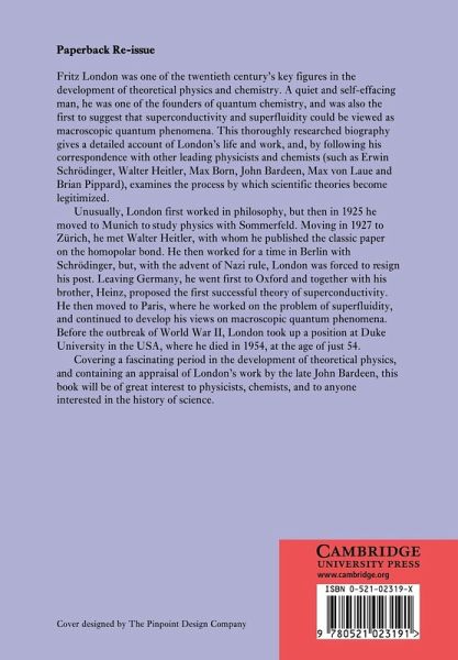 Fritz London was one of the twentieth century's key figures in the development of theoretical physics and chemistry. A quiet and self-effacing man, he was one of the founders of quantum chemistry, and was also the first to suggest that superconductivity and superfluidity could be viewed as macroscopic quantum phenomena. This thoroughly researched biography gives a detailed account of London's life and work, and, by following his correspondence with other leading physicists and chemists (such as Erwin Schrodinger, Walter Heitler, Max Born, John Bardeen, Max von Laue and Brian Pippard), examines the process by which scientific theories become legitimized.