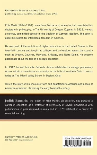Fritz Marti: Immigrant, A Biographical Memoir is the story of Marti’s encounter with and adaptation to America and a look at American academic life during the early Twentieth Century.