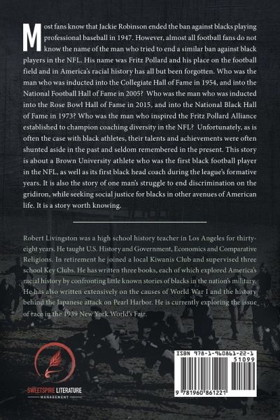 Most fans know that Jackie Robinson ended the ban against blacks playing professional baseball in 1947. However, almost all football fans do not know the name of the man who tried to end a similar ban against black players in the NFL. His name was Fritz Pollard and his place on the football field and in America's racial history has all but been forgotten. Who was the man who was inducted into the Collegiate Hall of Fame in 1954, and into the National Football Hall of Fame in 2005? Who was the man who was inducted into the Rose Bowl Hall of Fame in 2015, and into the National Black Hall of Fame in 1973? Who was the man who inspired the Fritz Pollard Alliance established to champion coaching diversity in the NFL? Unfortunately, as is often the case with black athletes, their talents and achievements were often shunted aside in the past and seldom remembered in the present. This story is about a Brown University athlete who was the first black football player in the NFL, as well as its first black head coach during the league's formative years. It is also the story of one man's struggle to end discrimination on the gridiron, while seeking social justice for blacks in other avenues of American life. It is a story worth knowing.