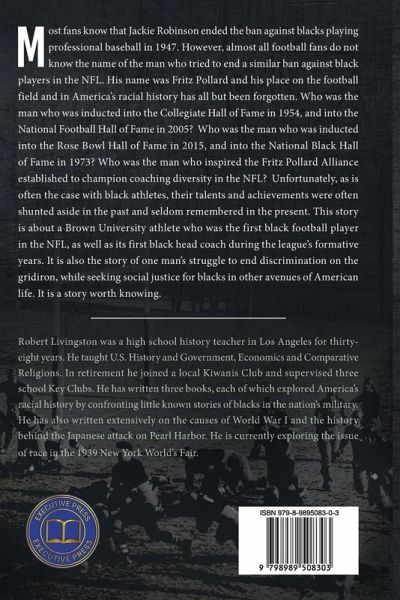 Most fans know that Jackie Robinson ended the ban against blacks playing professional baseball in 1947. However, almost all football fans do not know the name of the man who tried to end a similar ban against black players in the NFL. His name was Fritz Pollard and his place on the football field and in America's racial history has all but been forgotten. Who was the man who was inducted into the Collegiate Hall of Fame in 1954, and into the National Football Hall of Fame in 2005? Who was the man who was inducted into the Rose Bowl Hall of Fame in 2015, and into the National Black Hall of Fame in 1973? Who was the man who inspired the Fritz Pollard Alliance established to champion coaching diversity in the NFL? Unfortunately, as is often the case with black athletes, their talents and achievements were often shunted aside in the past and seldom remembered in the present. This story is about a Brown University athlete who was the first black football player in the NFL, as well as its first black head coach during the league's formative years. It is also the story of one man's struggle to end discrimination on the gridiron, while seeking social justice for blacks in other avenues of American life. It is a story worth knowing.