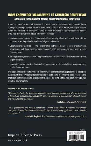 There continues to be much interest in the business and academic communities in the concept of strategic competencies or core capabilities, in other words, how organisations define and differentiate themselves. More recently, this movement has fragmented into a number of related fields with subtle differences in focus: knowledge management how organisations identify, share and exploit their internal competencies, in particular the knowledge of individuals; organisational learning the relationship between individual and organisational knowledge and how organisations 'unlearn' past competencies and acquire new competencies; strategic management how competencies can be assessed, and how these contribute to performance; and innovation management how such competencies are translated into new processes, products and services. This book attempts to integrate strategic and knowledge management approaches to capability-building and the development of competencies. The third edition is fully updated with five additional chapters by bringing together the latest research and practices from experts in the field. In addition, this book is a core text for the Imperial College London's Distance Learning MBA, and contains essential readings for students enrolled in this programme.