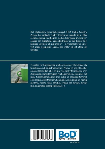 Idag finns många böcker, artiklar i tidningar och på Internet, poddar och YouTube-klipp samt inslag i tv-program där det högkänsliga personlighetsdraget HSP (Highly Sensitive Person) har omtalats. Mindre finns dock om mer personliga och därtill djupgående skildringar av inte endast hur det kan vara att leva som högkänslig utan framför allt om hur den typiskt högkänsliga aspekten "ett rikt inre liv" kan te sig; i synnerhet ur en introvert mans perspektiv. Denna bok syftar till att utöka detta utbud något. Berättelsen utspelar sig under ca ett och ett halvt år, med början i en resa till…mehr