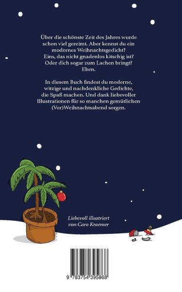 Über die schönste Zeit des Jahres wurde schon viel gereimt. Aber kennst du ein modernes Weihnachtsgedicht? Eins, das nicht gnadenlos kitschig ist? Oder dich sogar zum Lachen bringt?Eben.In diesem Buch findest du moderne, witzige und nachdenkliche Gedichte, die Freude machen. Und dank liebevoller Illustrationen für so manchen gemütlichen (Vor)Weihnachtsabend sorgen.