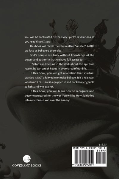 You will be captivated by the Holy Spirit's revelations as you read Frog Kissers. This book will reveal the very real but "unseen" battle we face as believers every day! God's people are truly without knowledge of the power and authority that we have full access to. If Satan can keep us in the dark about the spiritual realm, he can wreak havoc in every area of our life. In this book, you will get revelation that spiritual warfare is not a fairy tale or make-believe. It is a real war, which most of us are ill-equipped in and not knowledgeable to fight and win against. In this book, you will learn how to recognize and become prepared for the war. You will be Holy Spirit-led into a victorious win over the enemy!