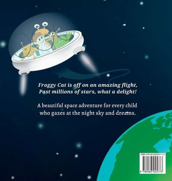 Froggy Cat in Space is a must for every child who gazes at the night sky and dreams! Froggy Cat is off on an amazing flight, Past millions of stars, what a delight! Join Froggy Cat as he jumps higher than ever before in his greatest adventure yet. Together with his friend they shoot off into space and discover forms of life that are very different from what they know. Their trip is out of this world... but will they want to return home? Full of beautiful illustrations of space and our planet Earth, Froggy Cat in Space is the second book in the Froggy Cat series. This creative picture book in rhyme will leave readers keen to have new adventures while also appreciating what they already have.