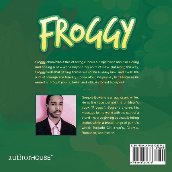 Froggy chronicles a tale of a frog curious but optimistic about exploring and finding a new world beyond his point of view. But along the way, Froggy finds that getting across will not be an easy task, and it will take a lot of courage and bravery. Follow along his journey to freedom as he unravels through ponds, trees, and villages to find a purpose.