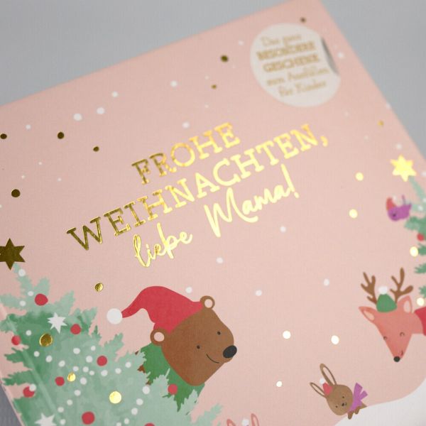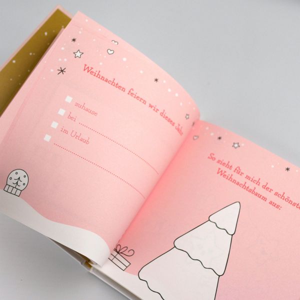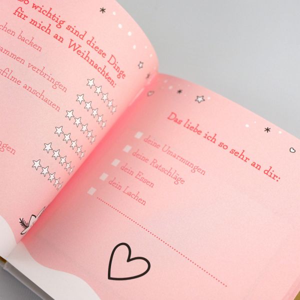 Ein ganz besonderes Geschenk für MamaWas wäre, wenn Kinder ihrer Mutter dieses Jahr ein ganzes Buch zu Weihnachten schreiben könnten? So ein einmaliges Erinnerungsstück ist doch gerade gut genug für die Mama, die immer da und unersetzlich ist! Mit diesem kleinen Buch können Kinder ihrer Mama ein einzigartiges Weihnachtsgeschenk machen. Geleitet von kreativen Anregungen und Fragen dürfen die Kinder malen, schreiben und gestalten, was das Zeug hält. Pünktlich zu Heiligabend liegt so ein individueller und liebevoller Weihnachtsgruß für die Mama unterm Weihnachtsbaum.-Hochwertiges Büchlein mit wunderschöner Covergestaltung und Goldfolie-Viel Platz zum Selbst-Gestalten für ein ganz persönliches Weihnachtsgeschenk-Malen, schreiben, ausschneiden und kleben? - Hier darf sich kreativ ausgetobt werden!