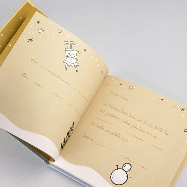 Ein ganz besonderes Weihnachtsgeschenk für OmasWas ist schöner, als der Oma etwas Selbstgemachtes zu schenken? In diesem Ausfüllbuch können Kinder, geleitet von kreativen Anregungen und Fragen, ihre Liebe und Zuneigung zu ihrer Großmutter künstlerisch verewigen. So entsteht pünktlich zu Heiligabend ein einzigartiger Erinnerungsschatz für einen ganz besonderen Menschen.-Hochwertiges Büchlein mit wunderschöner Covergestaltung und Goldfolie-Viel Platz zum Selbst-Gestalten für ein ganz persönliches Weihnachtsgeschenk-Malen, schreiben, ausschneiden und kleben? - Hier darf sich kreativ ausgetobt werden!