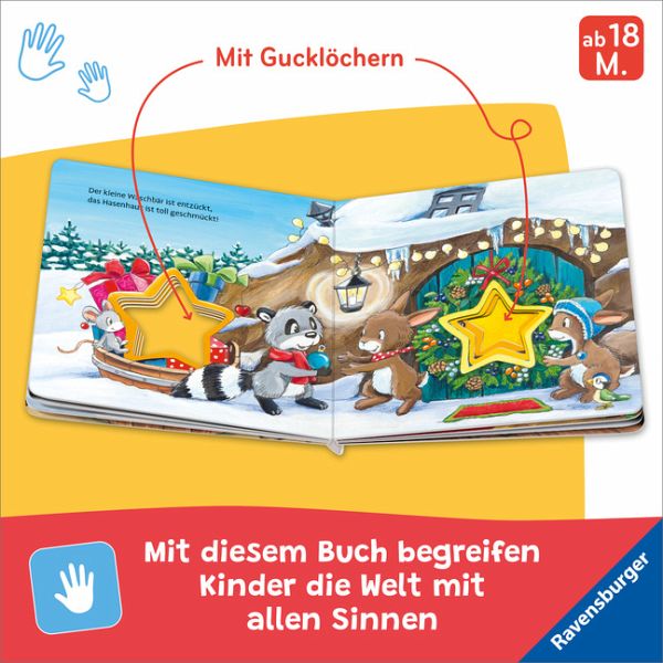 Spannende Gucklöcher und fröhliche Reime zum Weihnachtsfest für Kinder ab 18 Monaten.