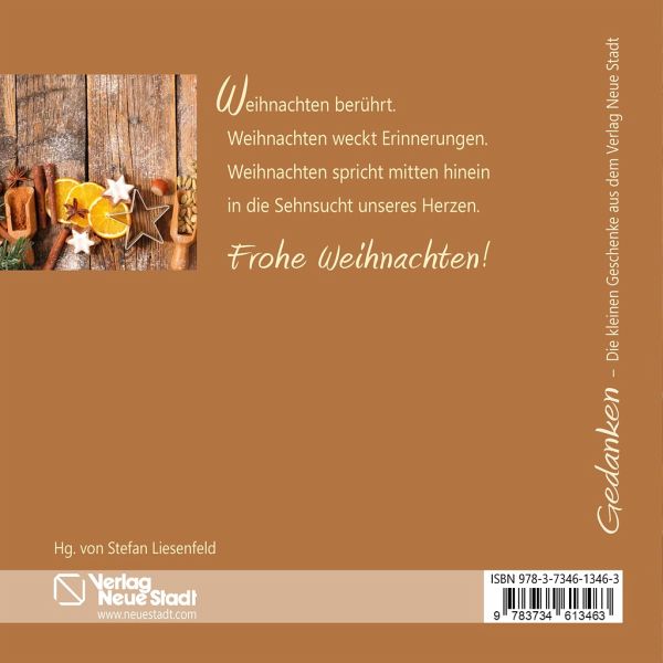 Frohe Weihnachten!Ein Weihnachtsgruß, der die Seele wärmtEin wunderschönes Geschenkheft, für alle, die Weihnachten lieben. Mit Gedichten, Gedanken und kurzen Anregungen über die frohe Weihnachtsbotschaft der Geburt Jesu.Weihnachten berührt.Weihnachten weckt Erinnerungen.Weihnachten spricht mitten hineinin die Sehnsucht unseres Herzen.Und die alte Botschaft, die Weihnachtsgeschichte, die bis heute verlesen, vertont, aufgeführt wird, was ist mit der? Es liegt ein Geheimnis darin, wie sehr sie bis heute anrührt: Glaubende wie Zweifelnde, Nicht-Glaubende wie Suchende. Ja, diese alte Geschichte scheint nicht zu veraltern. Beim genaueren Hinhören ahnt man warum: Darin steckt eine Botschaft, die mitten hinein in unser Leben spricht - mit all seinen Gegensätzen. Einige Spuren möchten die Texte und Bilder in diesem Heft nachgehen.Stefan LiesenfeldAus der Reihe GEDANKENZehn ausgesuchte, ganzseitige Farbbilder, ausdrucksstarke Gedanken und Kurztexte (24 Seiten, geheftet).Mit Platz für persönliche Zeilen und passendem Briefumschlag zum Verschicken an liebe Freunde oder als kleines Mitbringsel zum Fest.