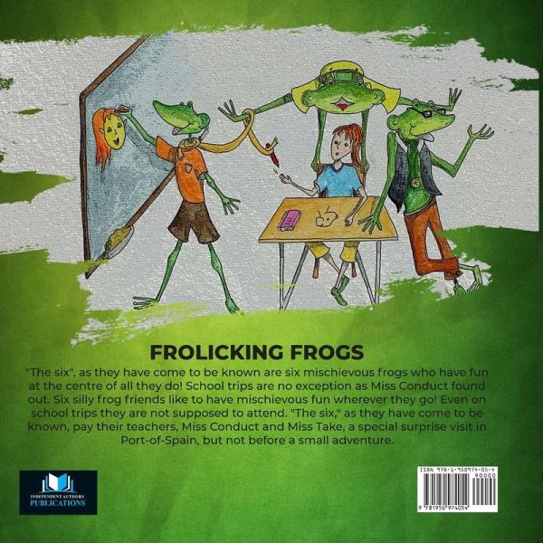 Six silly frog friends like to have mischievous fun wherever they go! Even on school trips they are not supposed to attend. "The six," as they have come to be known, pay their teachers, Miss Conduct and Miss Take, a special surprise visit in Port-of-Spain, but not before a small adventure.