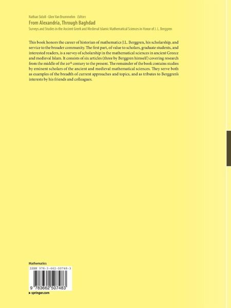 This book honors the career of historian of mathematics J.L. Berggren, his scholarship, and service to the broader community. The first part, of value to scholars, graduate students, and interested readers, is a survey of scholarship in the mathematical sciences in ancient Greece and medieval Islam. It consists of six articles (three by Berggren himself) covering research from the middle of the 20th century to the present. The remainder of the book contains studies by eminent scholars of the ancient and medieval mathematical sciences. They serve both as examples of the breadth of current approaches and topics, and as tributes to Berggren's interests by his friends and colleagues.