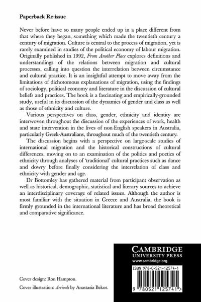 Never before have so many people ended up in a place different from where they began, something which made the twentieth century a century of migration. Culture is central to the process of migration, yet it is rarely examined in studies of the political economy of labour migration. Originally published in 1992, From Another Place explores definitions and understandings of the relations between migration and cultural processes, calling into question the interrelation between circumstance and cultural practice. It is an insightful attempt to move away from the limitations of dichotomous explanations of migration, using the findings of sociology, political economy and literature in the discussion of cultural beliefs and practices. The book is a fascinating, empirically grounded study, useful in its discussion of the dynamics of gender and class as well as those of ethnicity and culture.