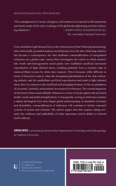 From Antebellum Light Skinned Slaves to the Globalization of Skin Whitening Biotechnology takes historically grounded analysis and delineates how the skin whitening industry has become a contemporary site that facilitates commodification of unregulated whiteness on a global scale. Amina Mire investigates the extent to which antebellum South anti-miscegenation racial purity laws facilitated unofficial interracial reproduction of light skinned slaves, resulting primarily from a systemic rape of enslaved Black women by white slave masters. This is because while different in terms of historical context, what the unregulated globalization of the skin whitening industry and the antebellum unofficial reproduction and trade in light skinned slaves have in common is the unofficial and unregulated nature of the accumulation of economic, symbolic, and aesthetic investment in whiteness. The central argument of this book is that commodifiable whiteness is a form of racial capital with profound health, social, and political implications. Consequently, as long as whiteness remains a salient ideological force that shapes global understanding of standards of beauty and desirability, commodification of whiteness will continue to further entrench systems of racism and colorism. The author argues this requires taking seriously the resilience and malleability of white supremacy and its ability to rebrand itself endlessly.
