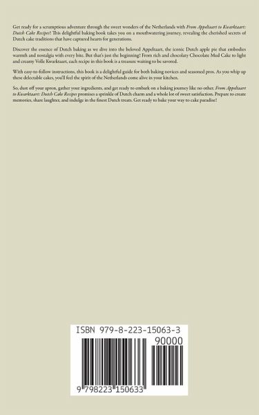 Get ready for a scrumptious adventure through the sweet wonders of the Netherlands with From Appeltaart to Kwarktaart: Dutch Cake Recipes! This delightful baking book takes you on a mouthwatering journey, revealing the cherished secrets of Dutch cake traditions that have captured hearts for generations. Discover the essence of Dutch baking as we dive into the beloved Appeltaart, the iconic Dutch apple pie that embodies warmth and nostalgia with every bite. But that's just the beginning! From rich and chocolaty Chocolate Mud Cake to light and creamy Volle Kwarktaart, each recipe in this book is a treasure waiting to be savored. With easy-to-follow instructions, this book is a delightful guide for both baking novices and seasoned pros. As you whip up these delectable cakes, you'll feel the spirit of the Netherlands come alive in your kitchen. So, dust off your apron, gather your ingredients, and get ready to embark on a baking journey like no other. From Appeltaart to Kwarktaart: Dutch Cake Recipes promises a sprinkle of Dutch charm and a whole lot of sweet satisfaction. Prepare to create memories, share laughter, and indulge in the finest Dutch treats. Get ready to bake your way to cake paradise!