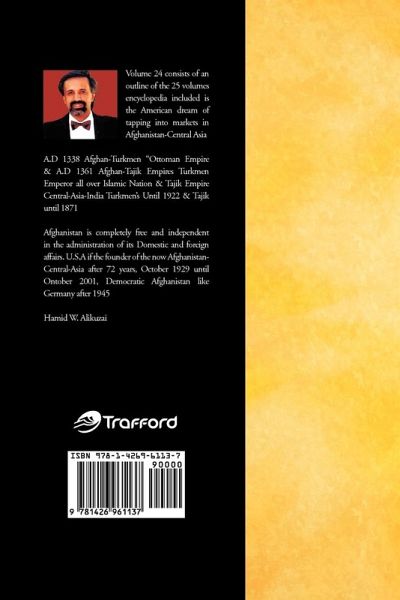 Volume 24 consists of an outline of the 25 volumes encyclopedia included is the American dream of tapping into markets in Afghanistan-Central Asia A.D 1338 Afghan-Turkmen "Ottoman Empire & A.D 1361 Afghan-Tajik Empires Turkmen Emperor all over Islamic Nation & Tajik Empire Central-Asia-India Turkmen's Until 1922 & Tajik until 1871 Afghanistan is completely free and independent in the administration of its Domestic and foreign affairs. U.S.A if the founder of the now Afghanistan-Central-Asia after 72 years, October 1929 until Ontober 2001, Democratic Afghanistan like Germany after 1945 Hamid W. Alikuzai