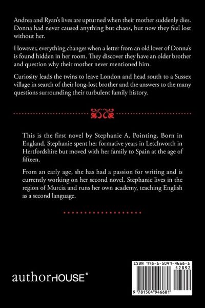 This is the first novel by Stephanie A. Pointing. Born in England, Stephanie spent her formative years in Letchworth in Hertfordshire but moved with her family to Spain at the age of fifteen. From an early age, she has had a passion for writing and is currently working on her second novel. Stephanie lives in the region of Murcia and runs her own academy, teaching English as a second language.