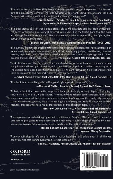 Worldwide, governmental anti-corruption efforts have been ramping up like never before. From the U.S. Foreign Corrupt Practices Act ("FCPA") to the U.K. Bribery Act and recent Chinese, French, Indonesian, Brazilian, and German anti-bribery legislations, the compliance world has witnessed the fight against corruption rocketing to the top of most law reform and enforcement agendas. As the fight against corruption goes global, practitioners of the compliance, regulatory, and investigative space must understandand--and more importantly navigate--these increasingly complicated and often perilous compliance waters. With that heavy reality in mind, this first-of-its-kind book draws on the real-world experience and expertise possessed by some of the world's leading anti-corruption and anti-bribery practitioners to make meeting that challenge easier. Featuring country-specific chapters and practitioner-focused "how to" modules, From Baksheesh to Bribery serves as a one-stop shop for practitioners, in-house counsel, compliance personnel, academics, and others who want--and often need--to understand the world's perspective on corruption and the fight against it.