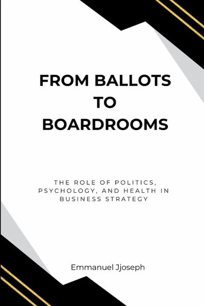 From Ballots to Boardrooms: The Role of Politics, Psychology, and Health in Business Strategy Description: In the ever-evolving landscape of modern business, understanding the intricate interplay between politics, psychology, and health is essential for developing effective strategies. "From Ballots to Boardrooms: The Role of Politics, Psychology, and Health in Business Strategy" explores these critical dimensions and their impact on organizational success. This comprehensive book delves into the dynamic relationship between politics and business, examining how government policies, regulatory frameworks, and geopolitical events shape market trends and business environments. It highlights the importance of staying informed about political developments and engaging in advocacy to navigate the complexities of the corporate world. The psychological foundations of business strategy are explored in depth, with a focus on cognitive biases, organizational behavior, and effective leadership. By leveraging psychological insights, business leaders can enhance decision-making, foster innovation, and create a positive work environment. The book provides valuable strategies for recognizing and mitigating cognitive biases, understanding organizational dynamics, and cultivating emotional intelligence. Health is often an overlooked aspect of business strategy, yet it plays a crucial role in productivity and long-term success. The book underscores the importance of employee health and well-being, discussing workplace health policies, wellness programs, and the economics of health in business. By prioritizing health, businesses can reduce healthcare costs, enhance employee engagement, and improve overall performance. "From Ballots to Boardrooms" integrates these dimensions into a holistic framework for business strategy. Through case studies, real-world examples, and practical insights, the book offers a comprehensive guide for business leaders to develop strategies that address the multifaceted challenges of the modern business environment. It emphasizes the interconnectedness of politics, psychology, and health, providing a roadmap for achieving sustainable growth, enhancing productivity, and fostering a positive organizational culture. Ideal for business leaders, professionals, and anyone interested in the intersection of politics, psychology, and health, this book offers a wealth of knowledge and actionable strategies to navigate the complexities of the corporate world and drive organizational success.