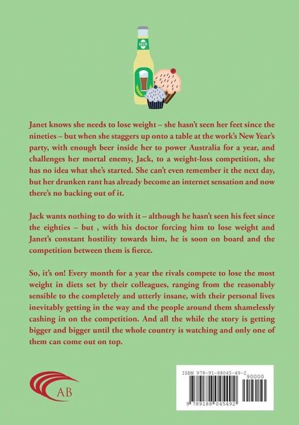 Janet knows she needs to lose weight - she hasn't seen her feet since the nineties - but when she staggers up onto a table at the work's New Year's party, with enough beer inside her to power Australia for a year, and challenges her mortal enemy, Jack, to a weight-loss competition, she has no idea what she's started. She can't even remember it the next day, but her drunken rant has already become an internet sensation, and now there's no backing out of it. Jack wants nothing to do with it - although he hasn't seen his feet since the eighties - but with his doctor forcing him to lose weight and Janet's constant hostility towards him, he is soon on board, and the competition between them is fierce. So, it's on! Every month for a year the rivals compete to lose the most weight in diets set by their colleagues, ranging from the reasonably sensible to the completely and utterly insane! Attracting full media attention.