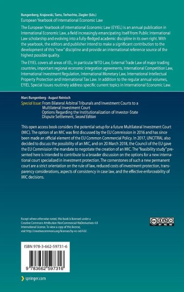 This open access book considers the potential setup for a future Multilateral Investment Court (MIC). The option of an MIC was first discussed by the EU Commission in 2016 and has since been made an official element of the EU Common Commercial Policy. In 2017, UNCITRAL also decided to discuss the possibility of an MIC, and on 20 March 2018, the Council of the EU gave the EU Commission the mandate to negotiate the creation of an MIC. The "feasibility study" presented here is intended to contribute to a broader discussion on the options for a new international court specialized in investment protection. The cornerstones of such a new permanent court are a strict orientation on the rule of law, reduced costs of investment protection, transparency considerations, aspects of consistency in case law, and the effective enforceability of MIC decisions.