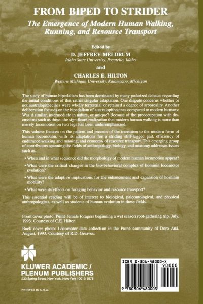 The inspiration for this volume of contributed papers stemmed from conversations between the editors in front of Chuck Hilton's poster on the determinants of hominid walking speed, presented at thel998 meetings of the American Association of Physical Anthropologists (AAPA). Earlier at those meetings, Jeff Meldrum (with Roshna Wunderlich) had presented an alternate interpretation of the Laetoli footprints based on evidence of midfoot flexibility. As the discussion ensued we found convergence on a number of ideas about the nature of the evolution of modem human walking. From the continuation of that dialogue grew the proposal for a symposium which we called From Biped to Strider: the Emergence of Modem Human Walking. The symposium was held as a session of the 69th annual meeting of the AAPA, held in San Antonio, Texas in 2000. It seemed to us that the study of human bipedalism had become overshadowed by theoften polarized debates over whether australo pithecines were wholly terrestrial in habit, or retained a significant degree of arboreality.