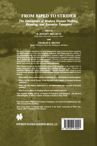 The inspiration for this volume of contributed papers stemmed from conversations between the editors in front of Chuck Hilton's poster on the determinants of hominid walking speed, presented at thel998 meetings of the American Association of Physical Anthropologists (AAPA). Earlier at those meetings, Jeff Meldrum (with Roshna Wunderlich) had presented an alternate interpretation of the Laetoli footprints based on evidence of midfoot flexibility. As the discussion ensued we found convergence on a number of ideas about the nature of the evolution of modem human walking. From the continuation of that dialogue grew the proposal for a symposium which we called From Biped to Strider: the Emergence of Modem Human Walking. The symposium was held as a session of the 69th annual meeting of the AAPA, held in San Antonio, Texas in 2000. It seemed to us that the study of human bipedalism had become overshadowed by theoften polarized debates over whether australo pithecines were wholly terrestrial in habit, or retained a significant degree of arboreality.