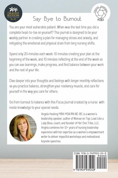 In From Burnout to Balance: A Nursing Resilience Journal, Angela created the fifth volume of the Focus Journal series so that busy nursing professionals could care for themselves to better care for others. With just 20 minutes of focused reflection each week, the nurse has the opportunity to self-assess and process their feelings, lighten their burden, and move from burnout to balance. 2020 was named the year of the Nurse. It was also the year that the Covid-19 pandemic placed extraordinary pressure on America's most trusted profession. Angela feels that now is the time when nurses need to take care of their most vulnerable and precious patient, themselves. ¿Angela Hosking MBA MSN RN NE-BC is a women's leadership speaker, author of Woman on Top: Lead Like a Lady Boss, coach, and founder of Her One Tribe, LLC. Angela combines her 12+ years of nursing leadership experience with her expertise as a women's empowerment writer to deliver impactful workshops and motivational keynote speeches.