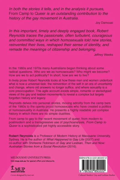 From Camp to Queer traces the history of a group of Australians in the 1970s who posed some radical questions. Who are we as homosexuals? Who might we become? How are we to act politically? In short, how are we to live? In lively prose, Reynolds looks at how these men and women undertook what is now a universal task: the re-invention of the self in an era of uncertainty and change, where old answers no longer suffice, and sexuality is a core preoccupation.