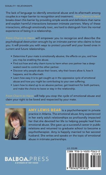 The lack of language to identify emotional abuse and its aftermath among couples is a major barrier to recognition and treatment. From Charm to Harm breaks down this barrier by providing simple words and definitions that name and explain harmful interactions between intimate partners. Many of these interactions, although emotionally toxic, are hard to distinguish from the normal experience of being in a relationship. From Charm to Harm will empower you to recognize and describe the psychological destruction wrought by an intimate partner who claims to love you. It will provide you with ways to protect yourself and your loved ones in current and future relationships. Determine if your mate is emotionally abusive, the effects on you, and how you may be enabling the abuse. Find out how and why charm turns to harm when one partner has a deep-seated need to control the other partner. Discover why people abuse their lovers, why their lovers allow it, how it happens, and its aftermath. Learn how easy it is to get caught up in the oppressive cycle of emotional abuse and how you might be contributing to your own suffering. Learn how to stand up to an abusive partner, get treatment for both partners, and make the choice to leave or stay in the relationship. From Charm to Harm will help you stop the cycle of emotional abuse and claim your right to be loved and respected by your mate.
